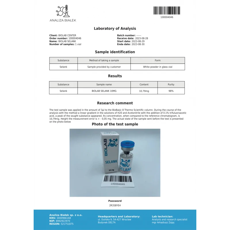 It is important to note that Selank Spray 10mg is supplied strictly for laboratory research use. It is not approved for human consumption, clinical application, or veterinary use.