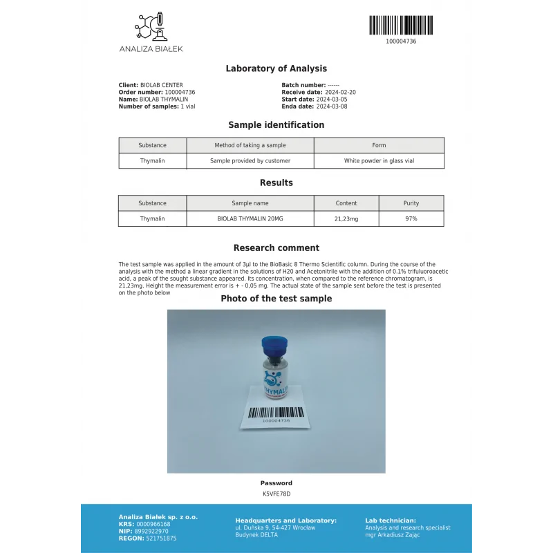 Thymalin 20mg is packaged to support stability and minimise contamination risks. Packaging protocols prioritise: